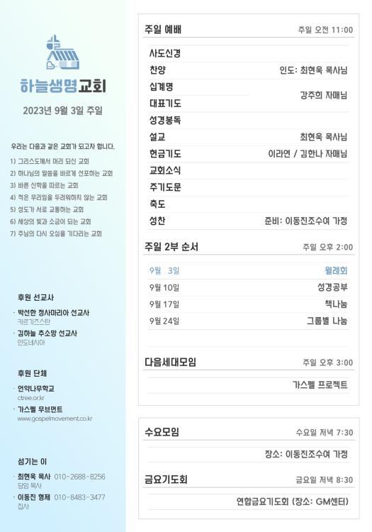 2023년 9월 3일 주일 광고