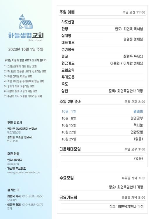 2023년 10월 1일 주일 광고