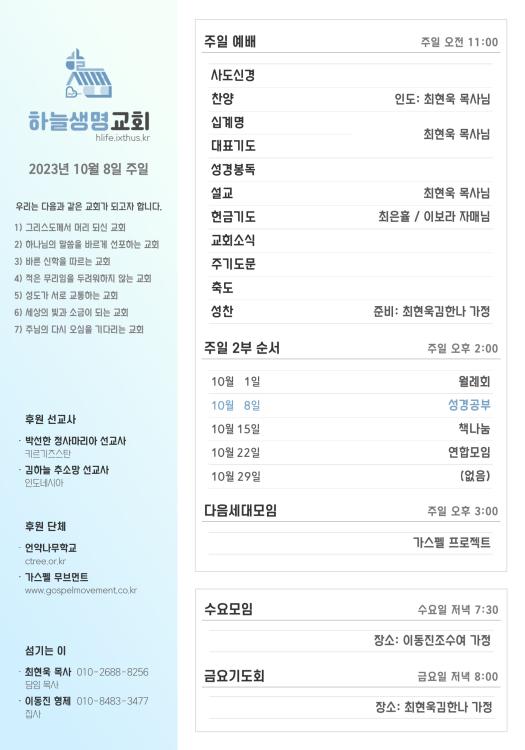 2023년 10월 8일 주일 광고