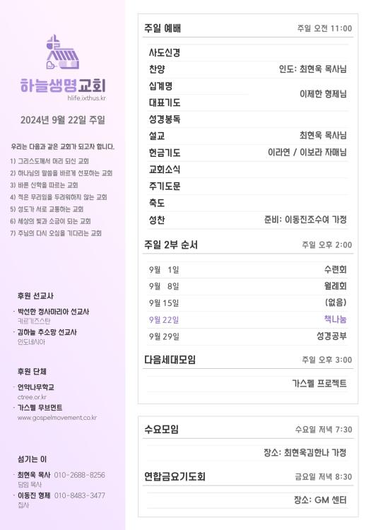 2024년 9월 22일 주일 광고