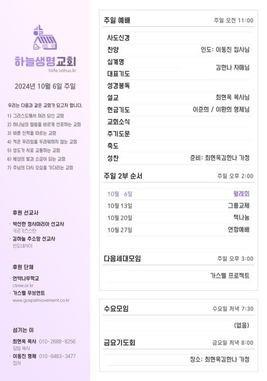2024년 10월 6일 주일 광고