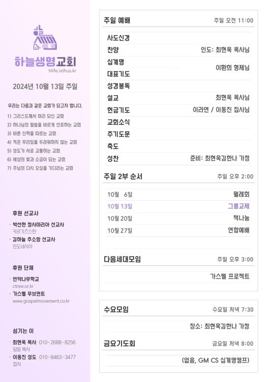 2024년 10월 13일 주일 광고