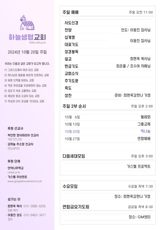2024년 10월 20일 주일 광고